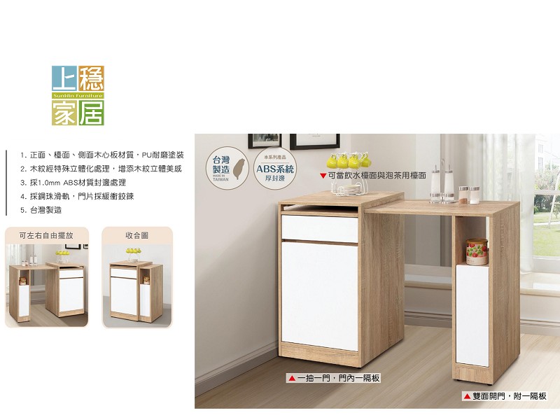 正面 側面木心板材質 PU耐磨塗裝 木紋經特殊立體化處理 增添木紋立體美感