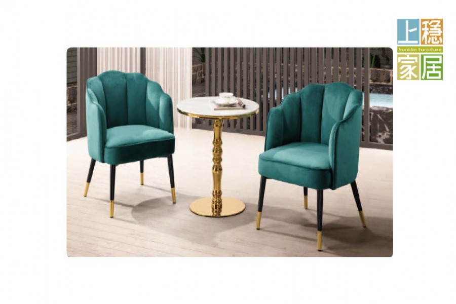 --尼東綠色絨布鐵腳休閒椅