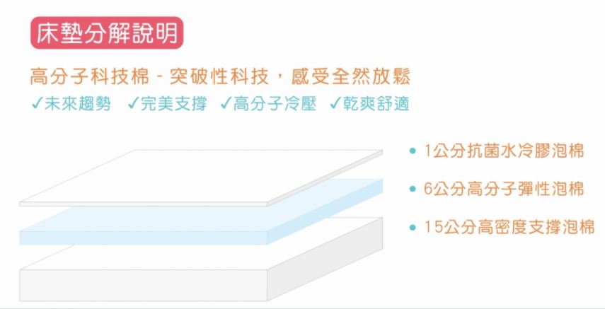 中層高分子彈性泡棉可高整成睡眠中最理想的軟硬度